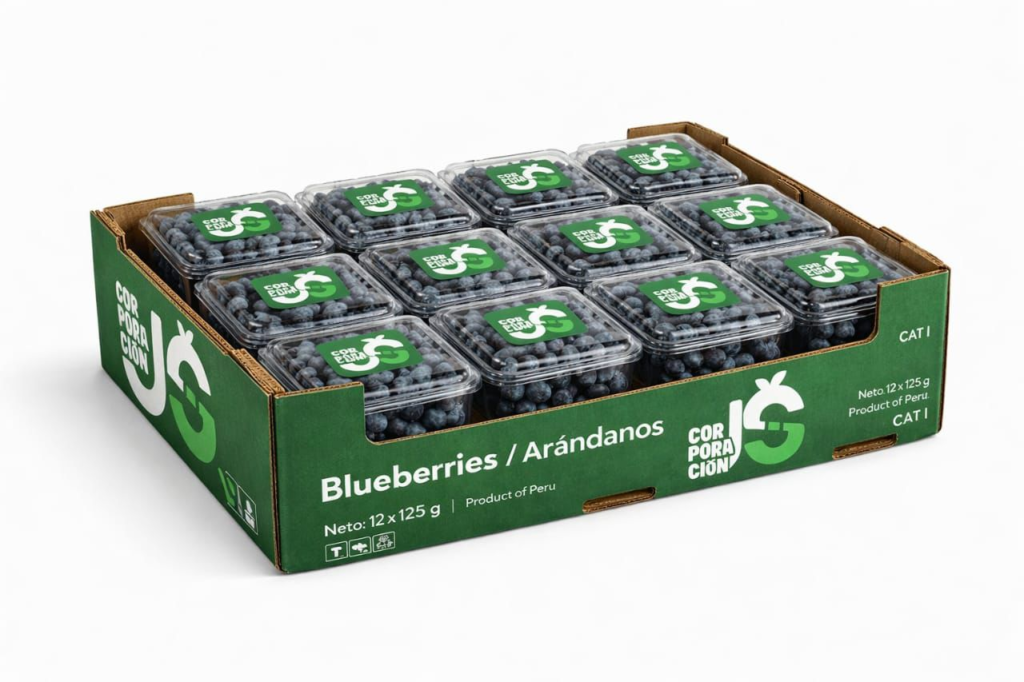 Los arándanos peruanos son reconocidos a nivel mundial por su sabor equilibrado, textura firme, color azul intenso y alto valor nutricional, siendo una fuente natural de antioxidantes, vitaminas y compuestos beneficiosos para la salud. Estas características los posicionan como una de las berries más demandadas en el comercio internacional. Como agroexportadores, aplicamos procesos de cosecha cuidadosa, selección, clasificación y empaque bajo estrictos estándares de calidad, asegurando fruta fresca, uniforme y con excelente vida postcosecha para su transporte y comercialización en mercados internacionales.