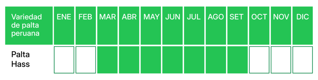 La cosecha de palta peruana se realiza desde marzo hasta septiembre.